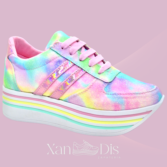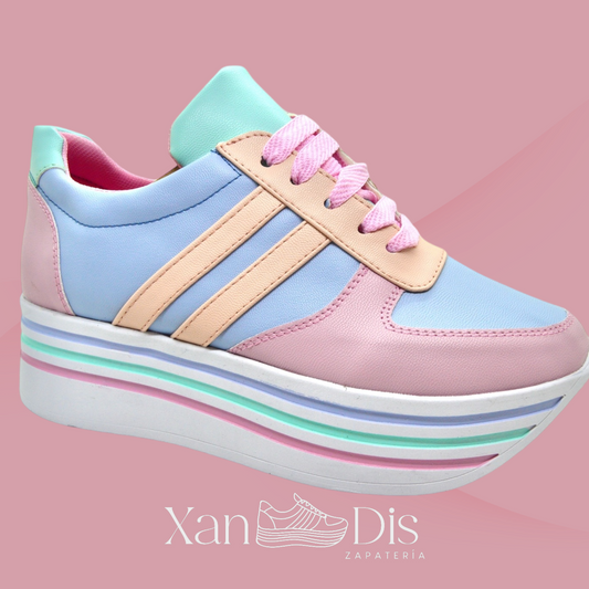 TENIS DE PLATAFORMA COLORES PASTEL ARCOIRIS