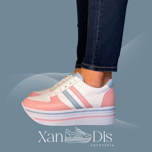 TENIS PLATAFORMA ALTA CUÑA BLANCOS ROSA AZUL PASTEL