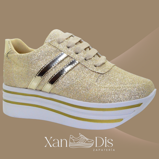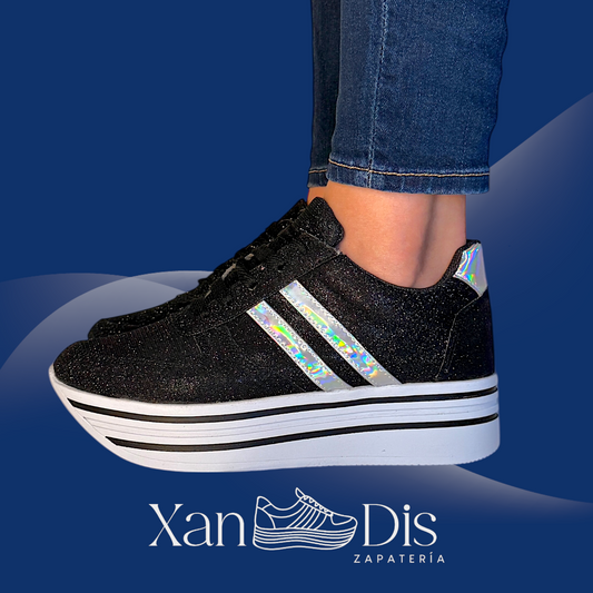 TENIS PLATAFORMA ALTA NEGROS BRILLOS GLITTER FIESTA CON TORNASOL