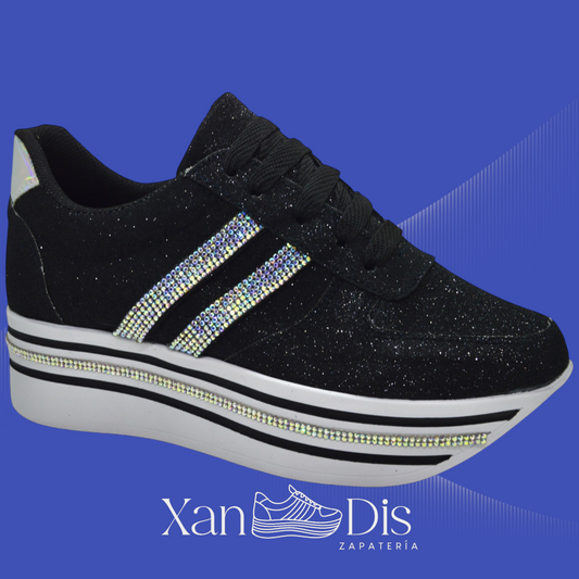 TENIS GLITTER NEGRO BRILLOS PEDRERIA