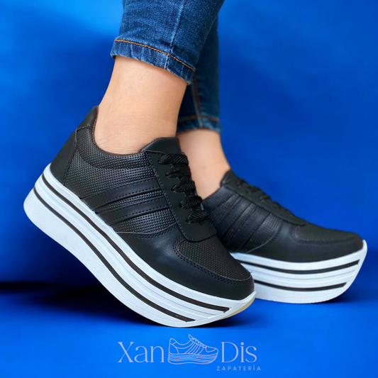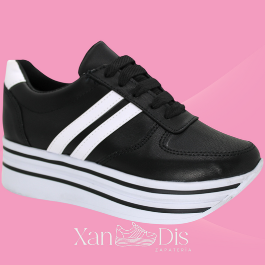 TENIS DE PLATAFORMA ALTA NEGROS RAYAS BLANCAS