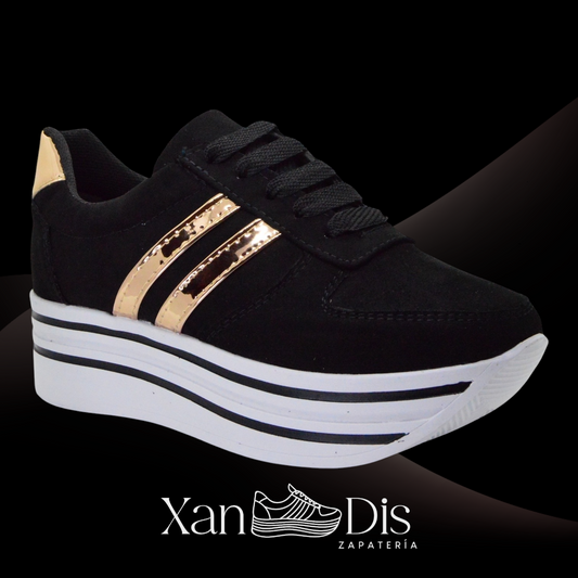 TENIS DE PLATAFORMA NEGRO ORO GAMUZA