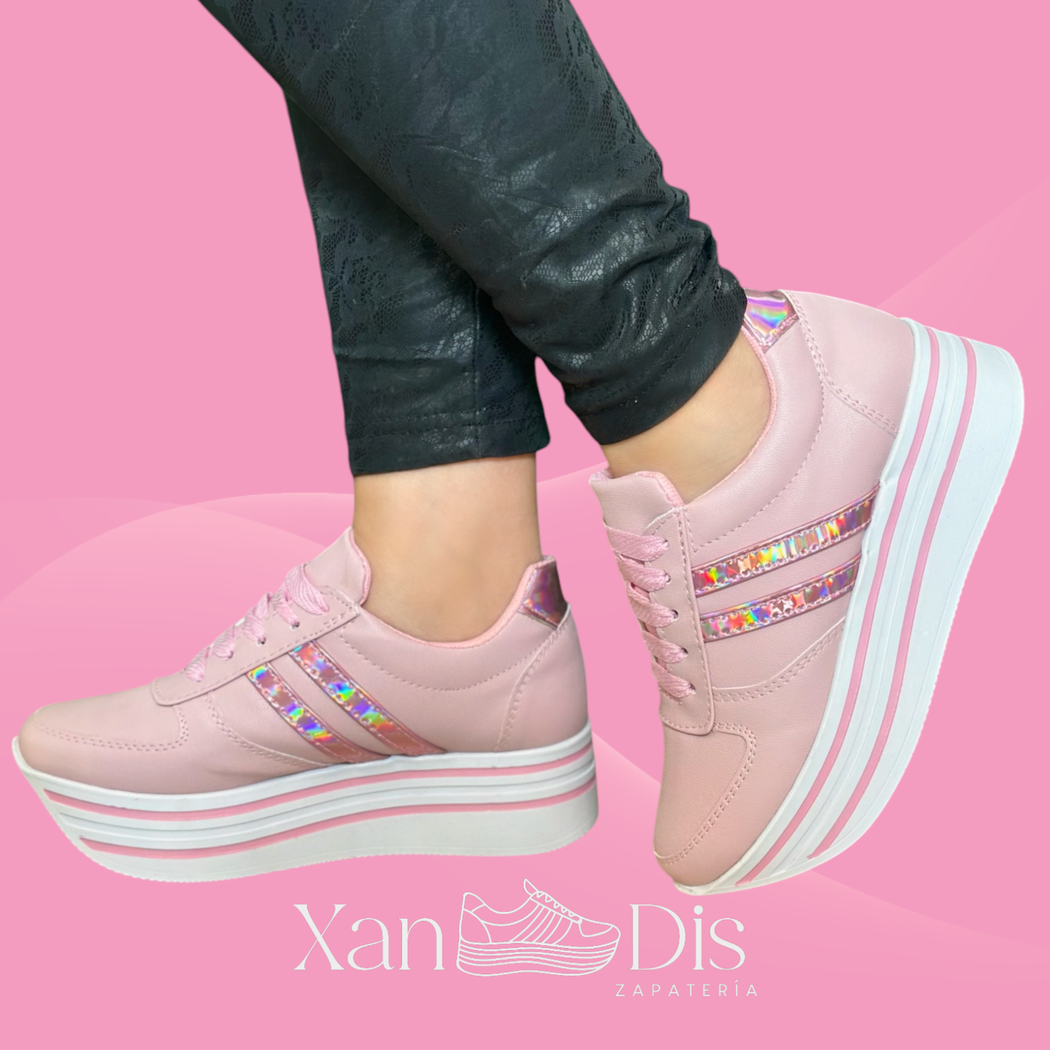 TENIS DE PLATAFORMA ROSAS PASTEL