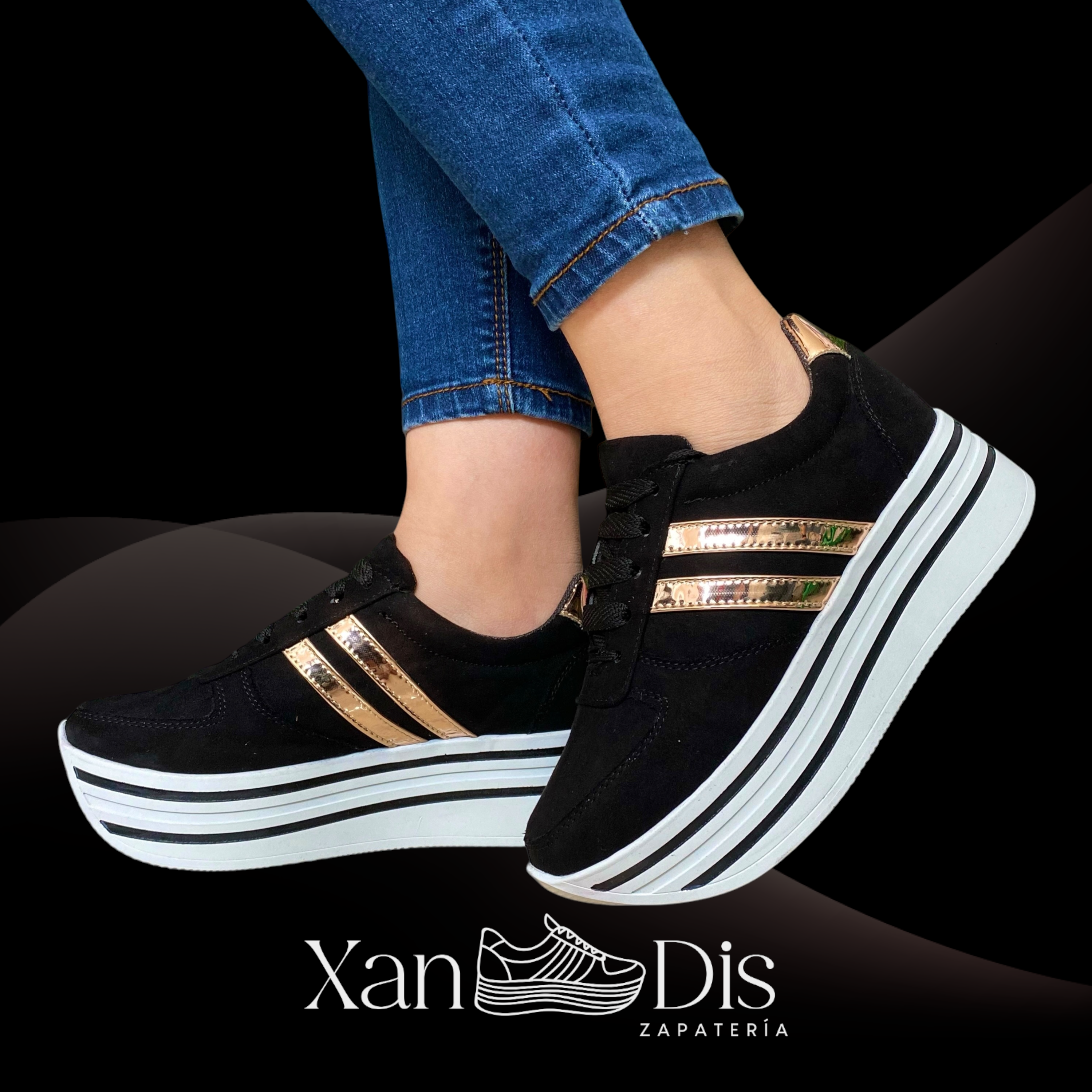 TENIS DE PLATAFORMA NEGRO ORO GAMUZA