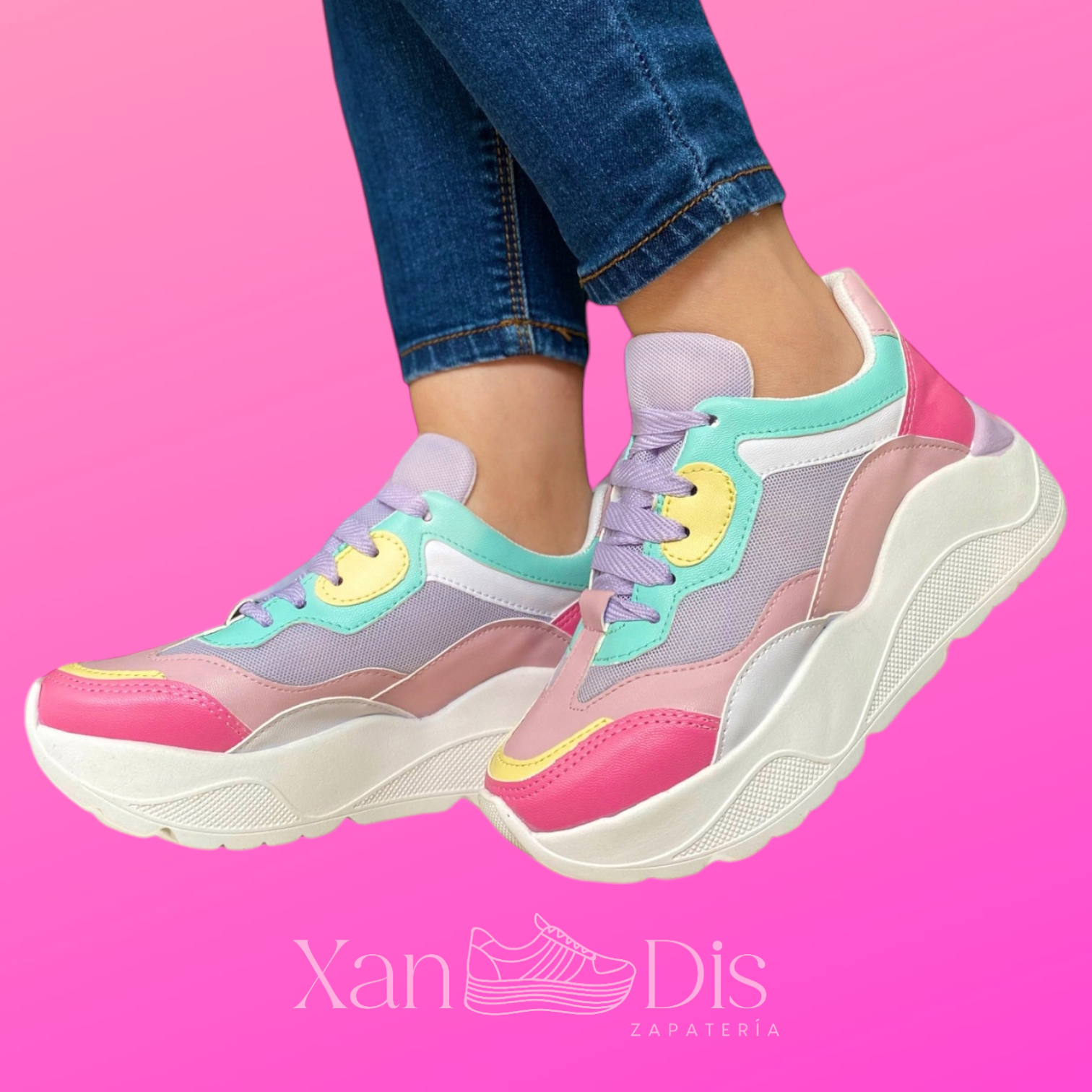 TENIS DE PLATAFORMA COLORES PASTEL ARCOIRIS