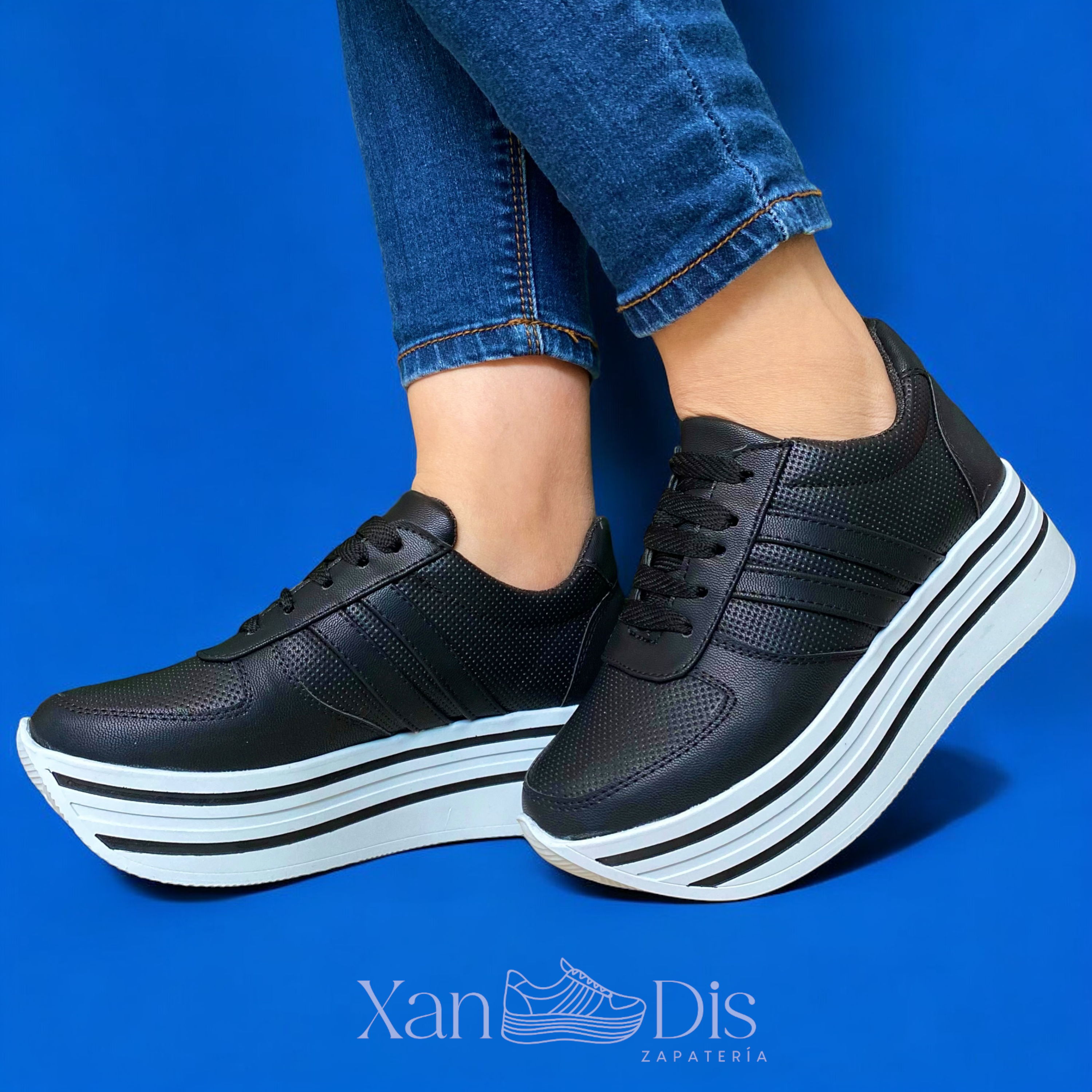 TENIS DE PLATAFORMA ALTA NEGROS RAYAS BLANCAS