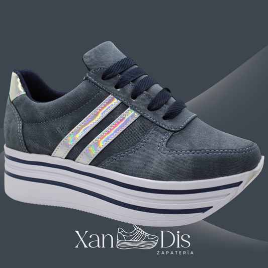 TENIS DE PLATAFORMA ALTA JEANS DENIM ESTAMPADO MEZCLILLA