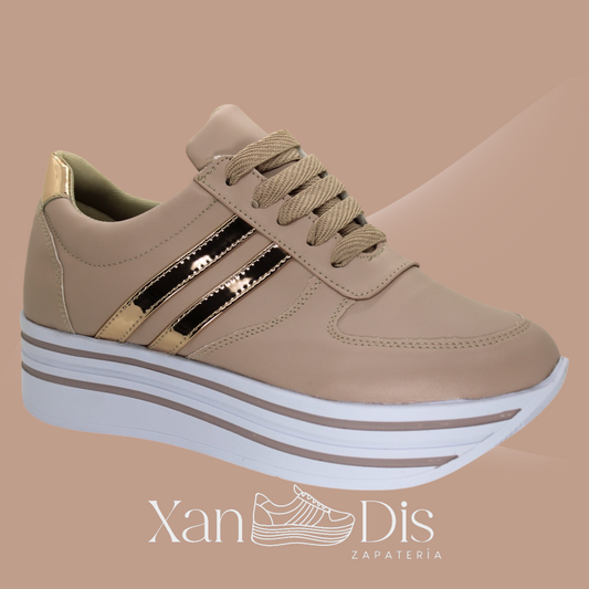 TENIS DE PLATAFORMA ALTA DURAZNO GAMUZA MOSTAZA