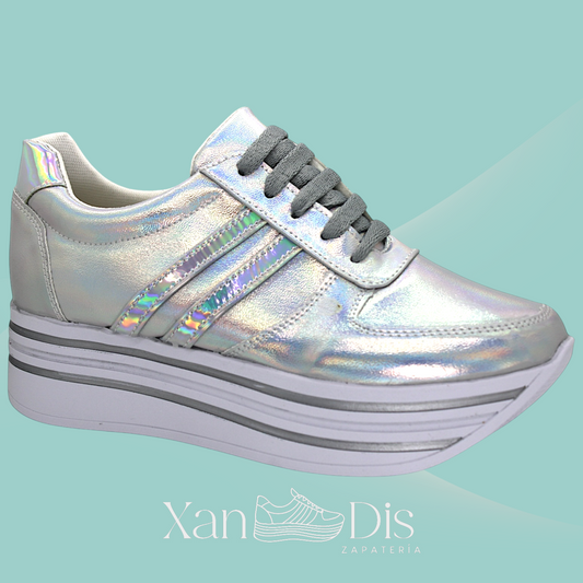 TENIS DE PLATAFORMA PLATEADOS TORNASOL
