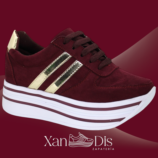 TENIS GAMUZA VINO ORO