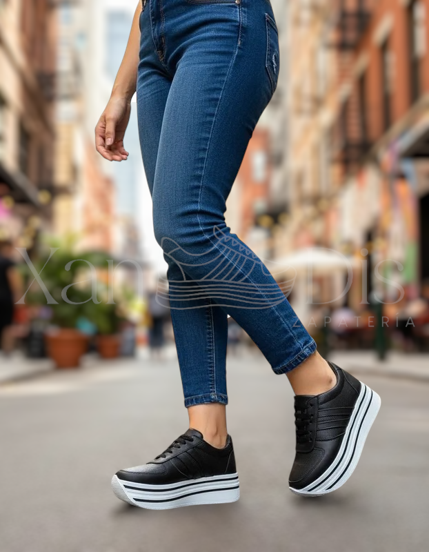 TENIS DE PLATAFORMA ALTA NEGROS PUNTOS